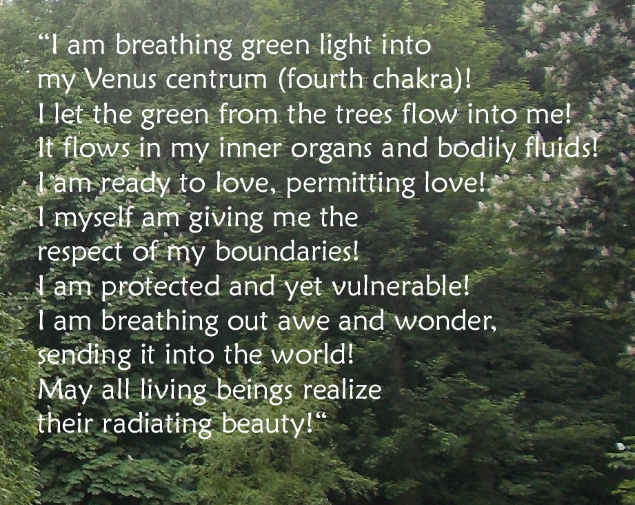 »I am breathing green light into my Venus centrum (my fourth chakra)!